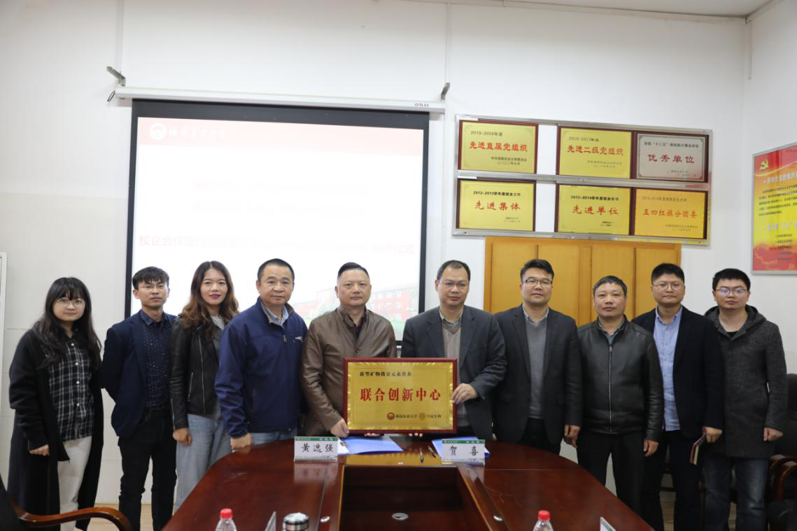 会议最后,在参会人员的见证下,校企双方领导共同签订校企合作协议,同时为新型矿物微量元素联合创新中心揭牌,并合影留念。